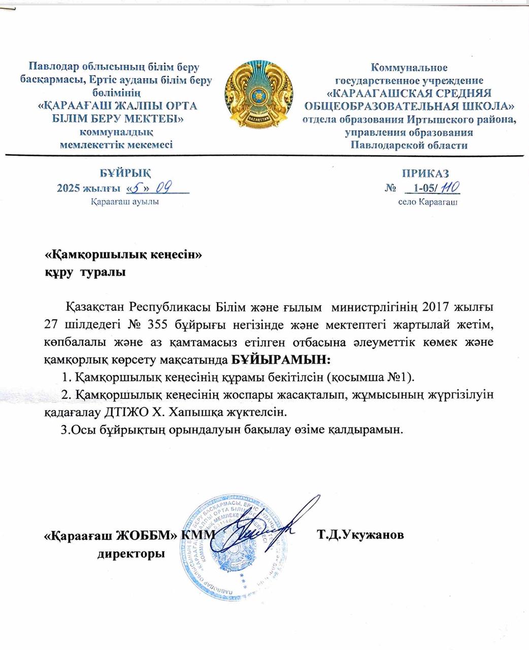 КГУ «Караагашская средняя общеобразовательная школа» отдела образования Иртышского района, управления образования Павлодарской области